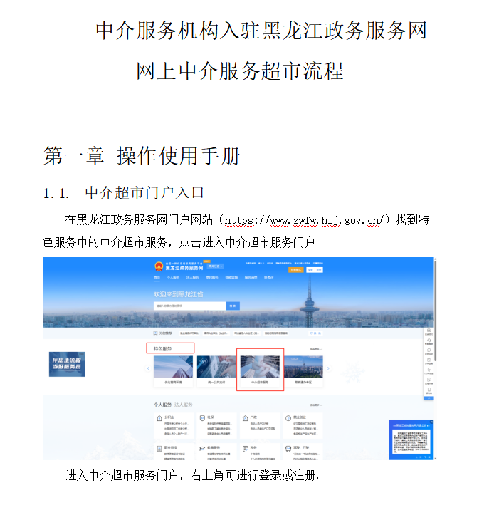 为进一步深化“放管服”改革,优化营商环境,规范中介服务行为,解决中介服务环节多、耗时长、市场垄断等问题,黑龙江政务服务网开通网上中介超市服务。网上中介服务超市是省内各类中介服务网上交易的综合性信息化服务和信用管理平台,为项目业主购买中介服务、中介服务机构承接中介服务项目、行业主管部门对相关单位和人员实施监管提供服务。