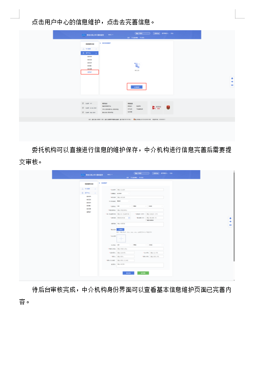中介服务机构登录黑龙江政务服务网网上中介服务超市(https://www.zwfw.hlj.gov.cn/),填写单位基本信息、资质信息、从业人员信息等内容后进行自愿注册,具体操作流程附后。