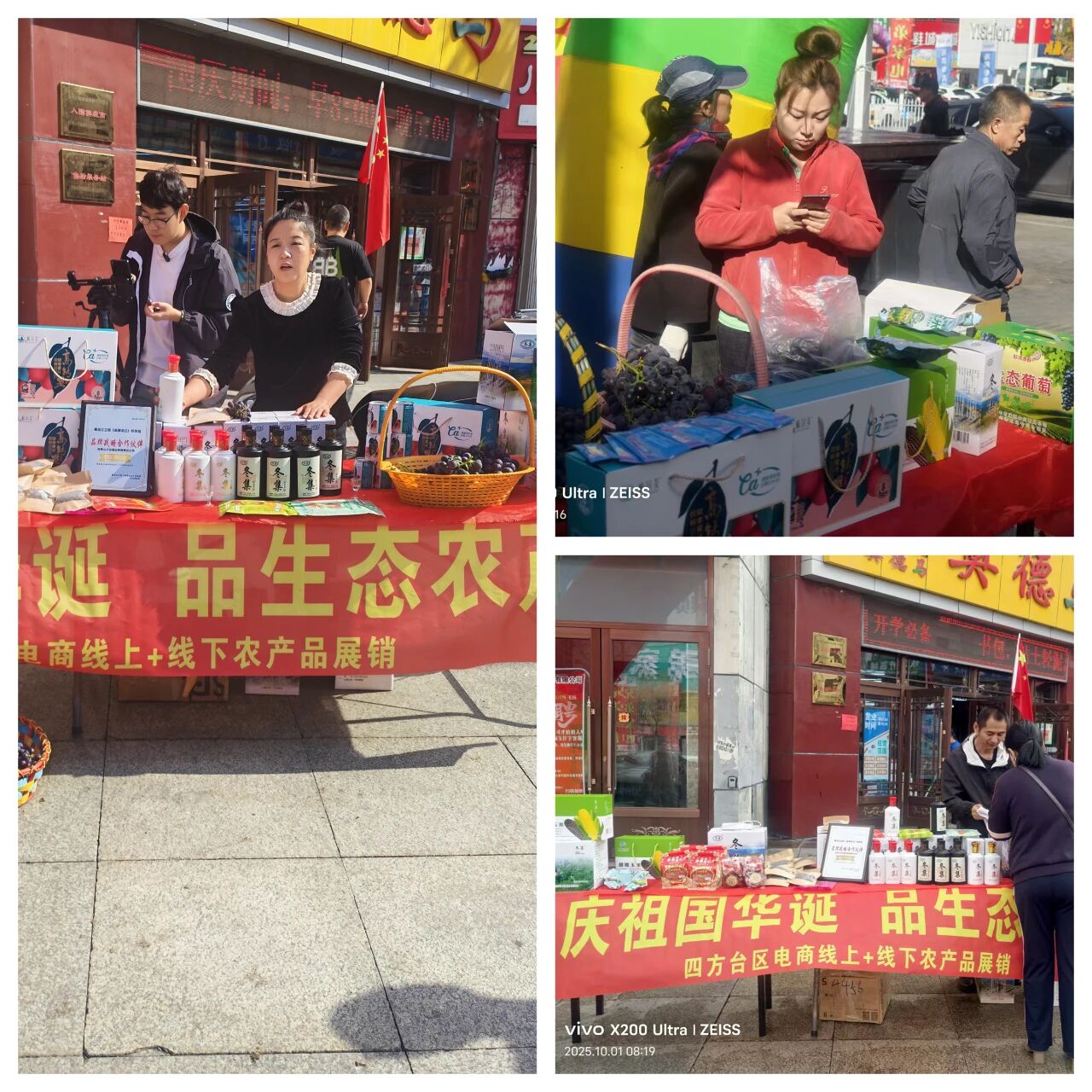 为了让四方台区好的农产品被更多消费者所熟知和喜爱,促进农民增收,国庆长假期间,区电商服务中心开展了国庆中秋助农线上线下直播带货活动。国庆长假期间,区电商服务中心在新兴大街客流量大的路段设置了直播点,全天进行优质农产品直播活动,线下销售情况也非常好。棚室葡萄、四方家宴系列、冬季养生酒等产品深受群众欢迎,成了居民馈赠亲友、节日家宴的首选。
