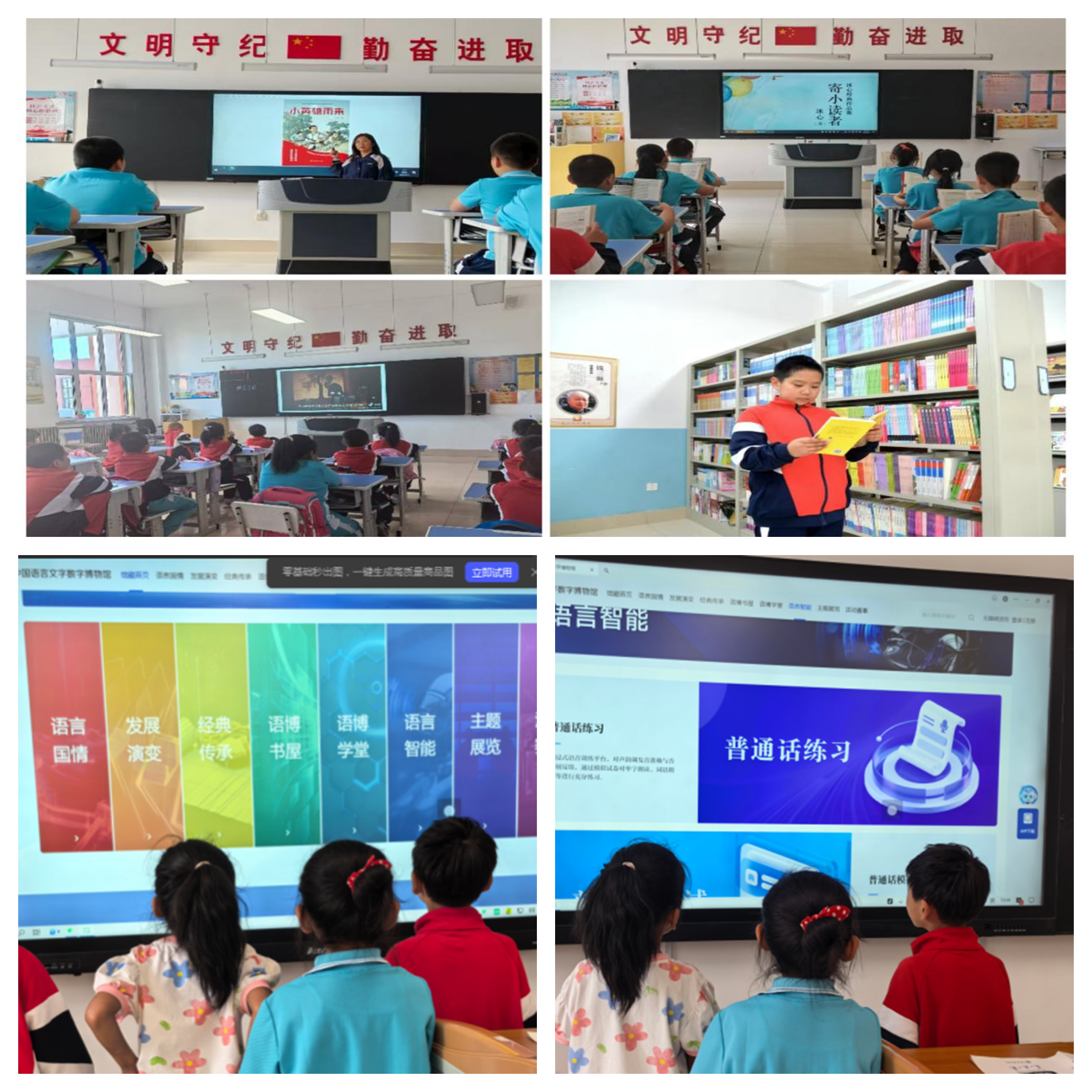 今年的推普周还特别融入了科技元素。同学们在老师指导下登录国家智慧教育平台和中国语言文字数字博物馆,体验在线普通话测评、汉字笔画动画等功能。