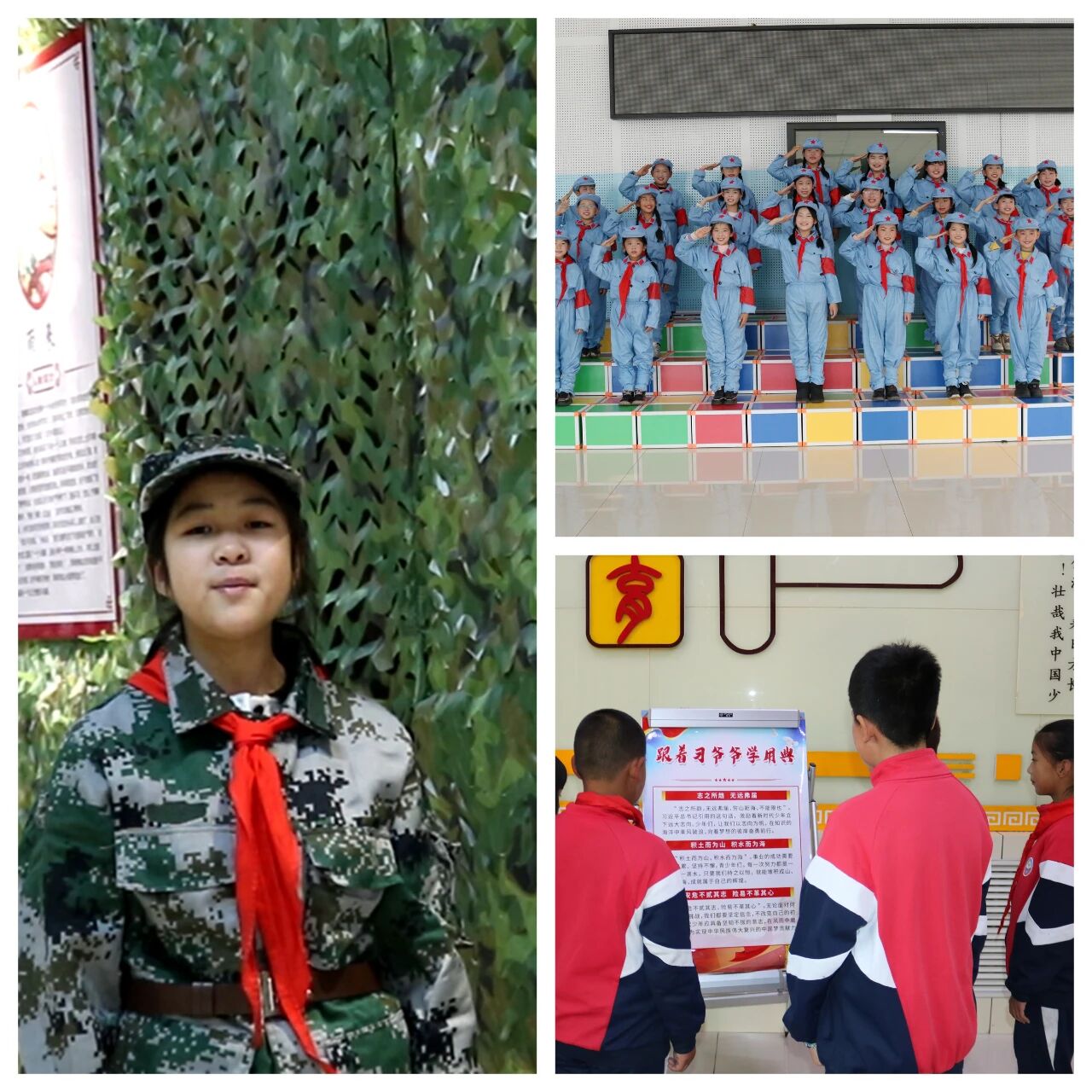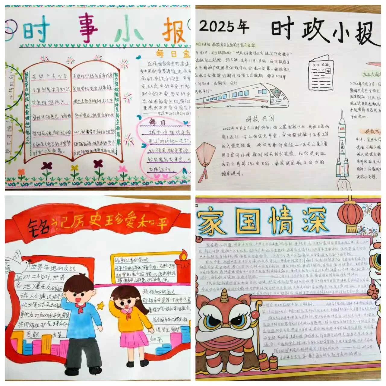 推出手抄报专项。学生们以习近平总书记最新重要活动和讲话精神为素材,通过图文结合形式呈现“一带一路”国际合作高峰论坛、乡村振兴战略等时政热点。拍摄《抗战精神》《小英雄故事》等红色故事宣讲视频、校合唱团拍摄红色歌曲视频,在学校新媒体平台播出,创新讲好中国式现代化故事,唱响团结奋斗主旋律,用领袖的魅力、思想的力量,让爱国主义精神在学生心中牢牢扎根。推出“跟着习近平总书记学用典”典故海报展。精选习近平总书记讲话中引用的典故,结合现代设计元素制作系列海报。