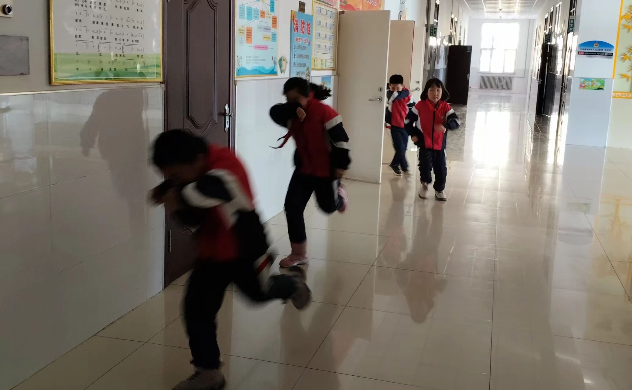 随着一阵急促的警报声拉开了“师生火灾逃生演练”的帷幕。听到警报声,各位老师即刻到达指定岗位,一边维持秩序,一边指挥学生有序撤离疏散,同学们有的佩戴口罩,有的利用随身携带的手帕或双手捂住口鼻,弯着腰,沿着各个指定的楼道快速前进,有序地撤离到学校操场的安全地带。整个过程中,老师们组织有力,同学们听从指挥,演练全程安全、高效,无意外发生。