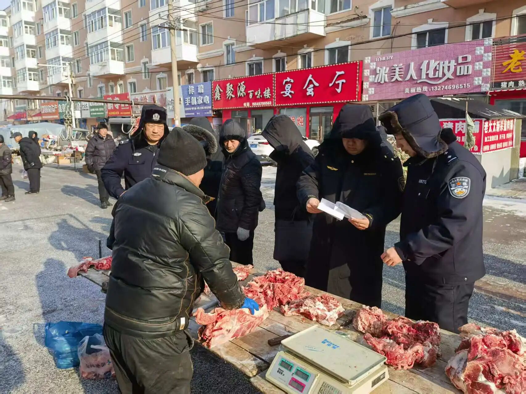 为切实守护群众“舌尖上的安全”,针对辖区集市肉制品消费集中、风险隐患相对突出的特点,今日,双鸭山市公安局四方台分局环食药侦大队联合新立市场监督管理所、东荣派出所开展专项执法检查行动,以“监管+快检+普法”三重举措,织密辖区食品安全防护网。
