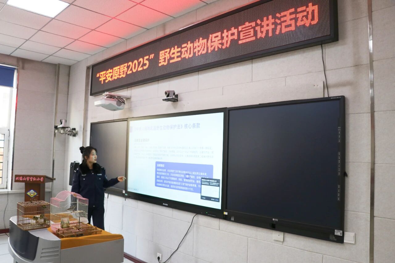 为提高辖区群众尤其是青少年的爱鸟护鸟意识,筑牢其生态保护法治防线,11月19日,双鸭山市公安局四方台分局组织民辅警走进辖区育红小学,开展“平安原野2025”野生动物保护宣讲活动,通过“法律讲解+活体互动”的创新形式,让护鸟知识可感可及,让守法理念深植心间。