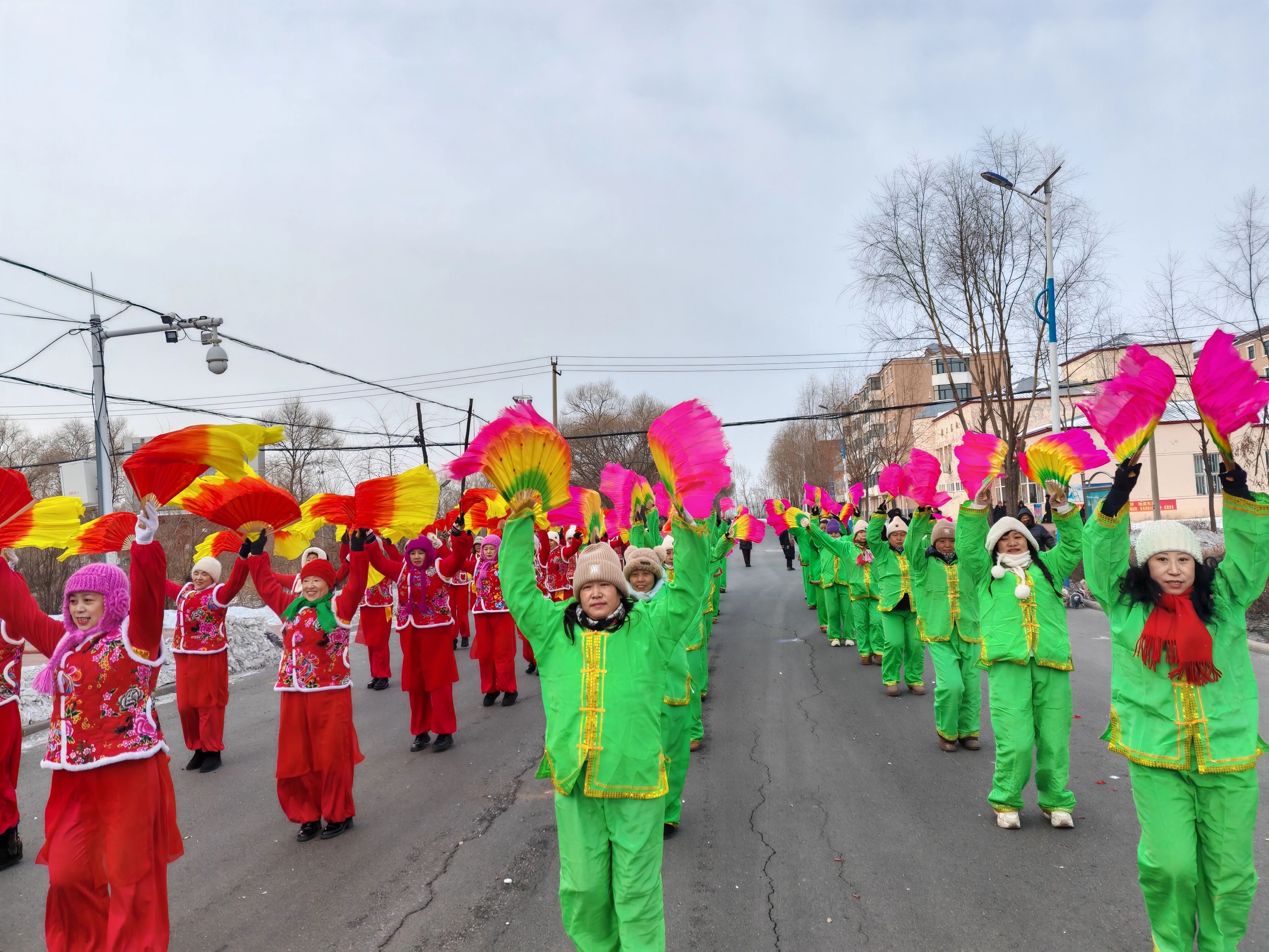 活动伊始,伴随着有力、节奏明快的锣鼓声,扭秧歌表演正式拉开帷幕。表演者们身着色彩鲜艳、图案精美的传统服饰,步伐轻盈欢快,队形变化灵动自如。他们手中的扇子与彩绸上下翻飞、左右舞动,似灵动的彩蝶在空中翩翩起舞,将新春的喜悦之情与民俗文化的独特魅力展现得淋漓尽致,引得现场观众阵阵喝彩。